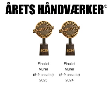 Vi er det oplagte valg, når du ønsker håndværk af høj kvalitet, tæt kundedialog og flotte, holdbare resultater. Vi sætter en ære i at levere et godt arbejde hver gang og vi er stolte af at være finalist til årets Murer to år i træk.